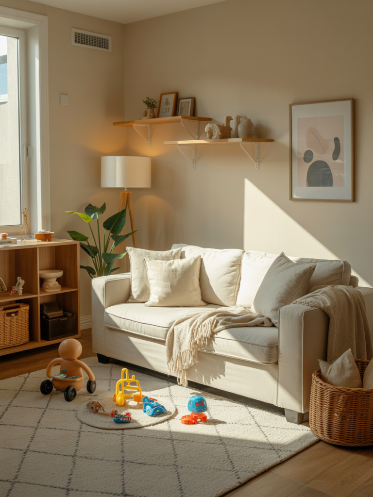 Opt for washable textiles, soft corners, and forgiving fabrics. Real coziness is lived-in.